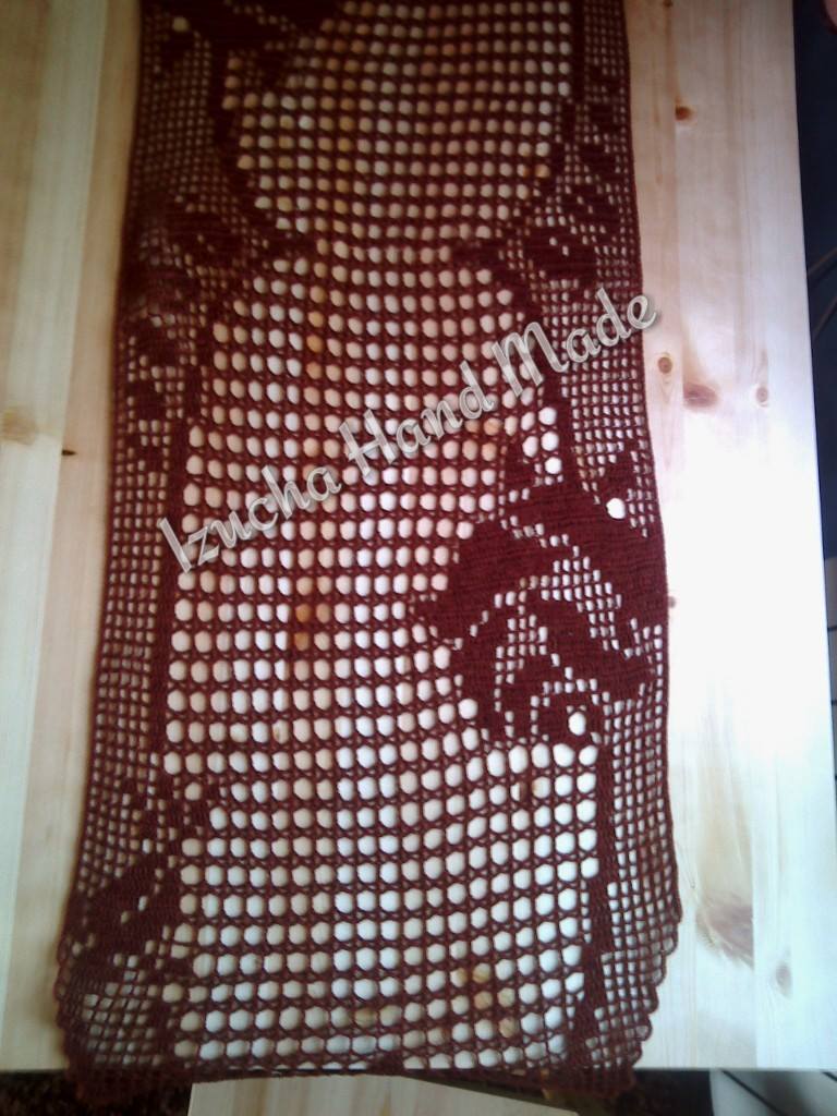 Klasyka w apetycznym czekoladowym wydaniu od Izucha hand-made. Bieżnik z kordonka Aria 5 firmy Ariadna, o wymiarach 150 cm na 47 cm, na którego zużyto półtora szpuli dziergając szydełkiem Tulip nr 1,75.