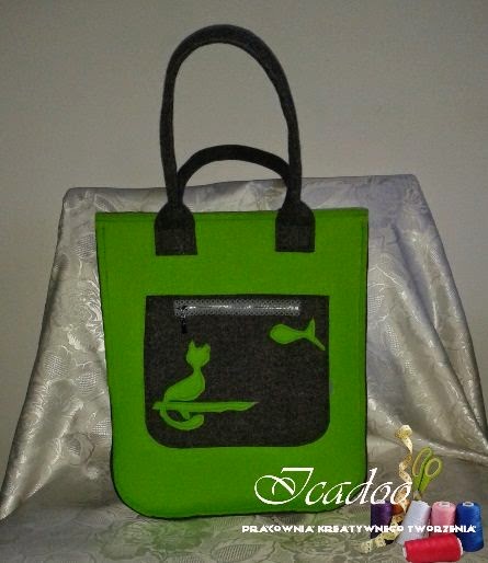 Zamek ażurowy wykorzystany jako ozdobne zapięcie w torebce filcowej uszytej przez Panią Monikę.